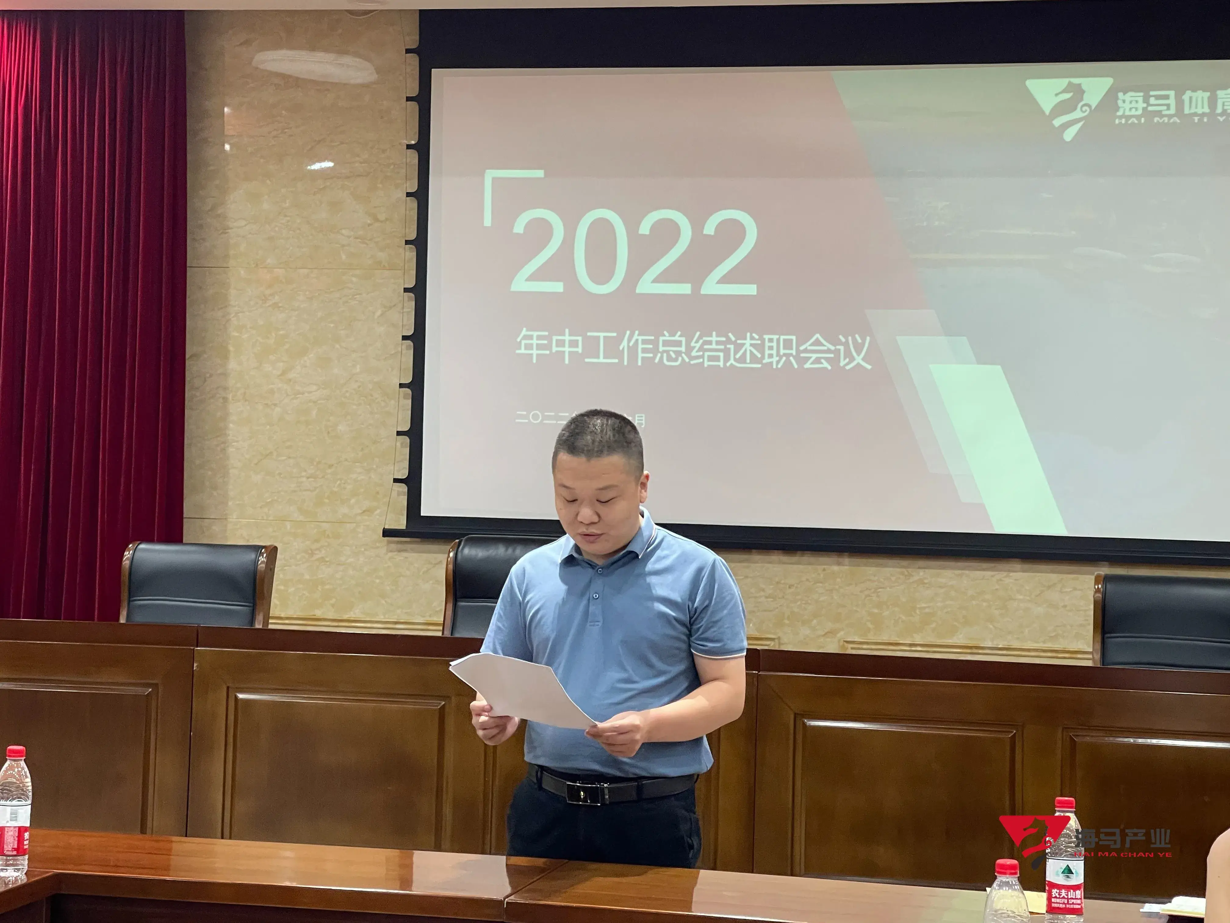 2022年6月29日下午,焦点娱乐文化产业集团在山东省体育中心二楼会议室召开年中工作总结述职会议,会议对上半年工作成果进行了总结汇报,并就下半年重点工作进行部署。总经理王海民出席了本次会议。会议由综合管理部负责人王永健主持。